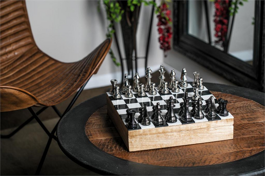 Elegant Silver Aluminum Chess Set with Black & Silver Pieces - 17"x17"x6"
