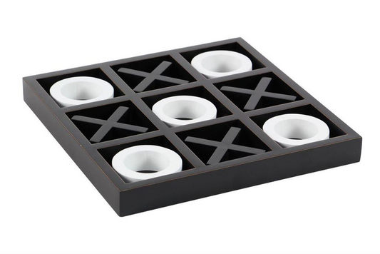 Modern Black Wood Tic Tac Toe Game Set with Black & White Pieces, 14” x 14" x 2"